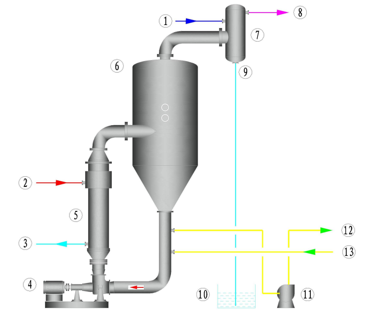 FC型結(jié)晶器采用強(qiáng)制外循環(huán)泵增大循環(huán)量、強(qiáng)化換熱器溶液側(cè)的傳熱能力。其通常應(yīng)用于對粒度要求不高的蒸發(fā)結(jié)晶,其對于高密度、高粘度、容易結(jié)壁結(jié)疤的溶液使用效果明顯。
